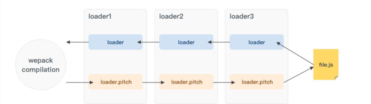 a!b!c!module, 正常调用顺序应该是 c、b、a,但是真正调用顺序是 a(pitch)、b(pitch)、c(pitch)、c、b、a,如果其中任何一个 pitching loader 返回了值就相当于在它以及它右边的 loader 已经执行完毕 - 比如如果 b 返回了字符串"result b", 接下来只有 a 会被系统执行,且 a 的 loader 收到的参数是 result b